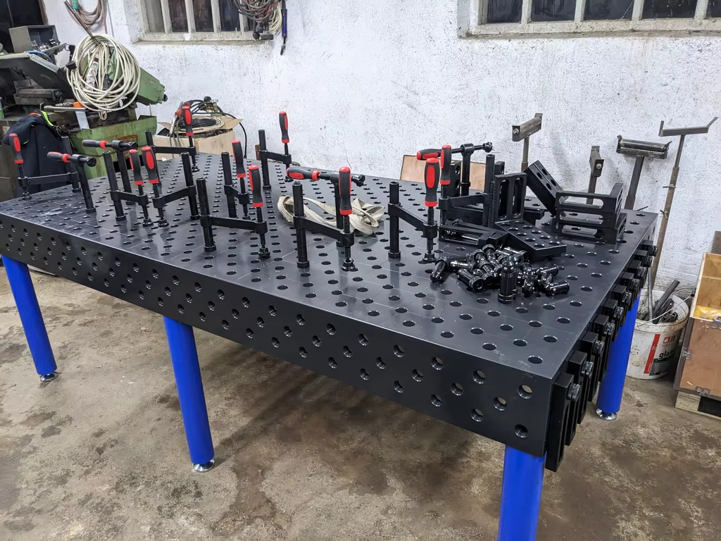 Πολυλειτουργική προσαρμοστικότητα: Ο πάγκος έχει προ-τρυπημένες οπές τοποθέτησης και θέσεις στήριξης για γρήγορη στερέωση διαφόρων εξαρτημάτων εργαλείων, συμβατές με διάφορες διαδικασίες όπως η χειροκίνητη συγκόλληση τόξου, η συγκόλληση με τόξο αργού και η συγκόλληση με θωράκιση αερίου.